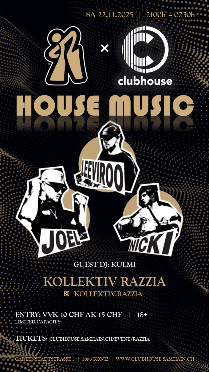 Clubhouse meets Razzia, and the guys will entertain you with the finest house music!